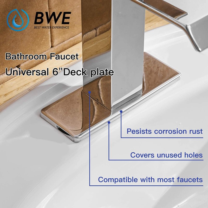BWE 6" Sink Hole Cover Chrome for Bathroom Vanity Sink 1 Hole or 4 Inch 3 Holes Centerset Sink Stainless Steel Deck Plate Escutcheon Modern Cover Cap
