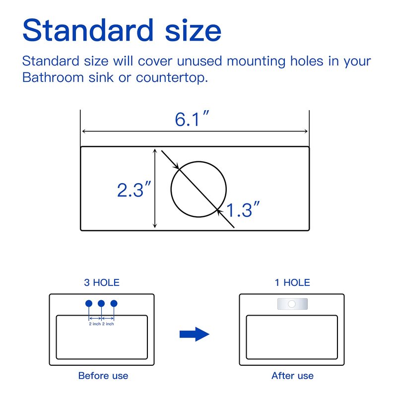 Allows single-hole faucets to be installed on 4" (approximately 10.2 cm) center vanity。