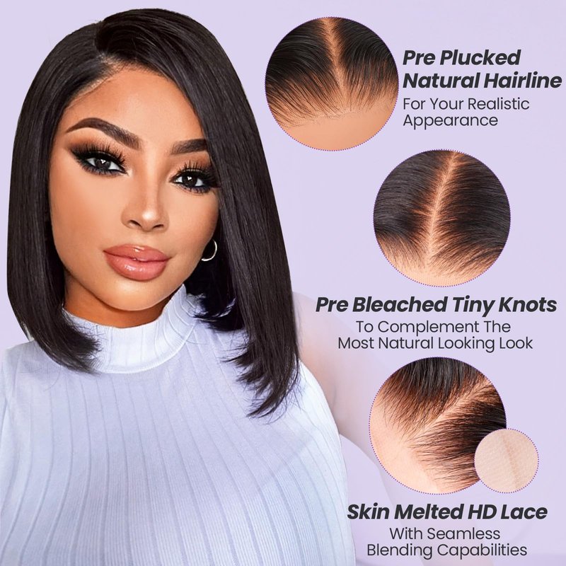 - Bye Bye Knots Wig : This Bob Wig is150% Density. Upgrade Pre Bleached Invisible Tiny Knots, Pre Plucked Hairline, Giving Natural Real Scalp Look.No Need to Bleach the Knots Yourself, Say Goodbye to Unnatural Big Knots Wig