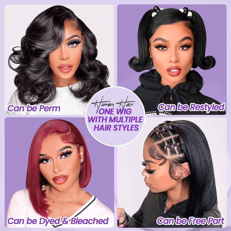 - 100% Human Hair: 100% Virgin Human Hair Bob Wig, Collect From Young Donors. Soft and Healthy, Minimum Shedding and Tangle, Can Be Dyed, Permed and Restyled