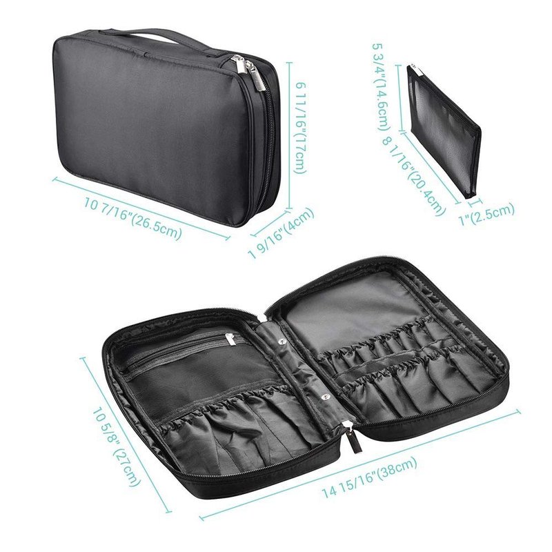 - [Portable & Lightweight]: This Byootique Makeup Brush Bag weighs only 0.46 Lbs and comes in compact size of 10 7/16" x 6 11/16" x 1 9/16" with a convenient handle for easy carrying, making it your great companion for your travel, ideal for makeup artists and beauticians