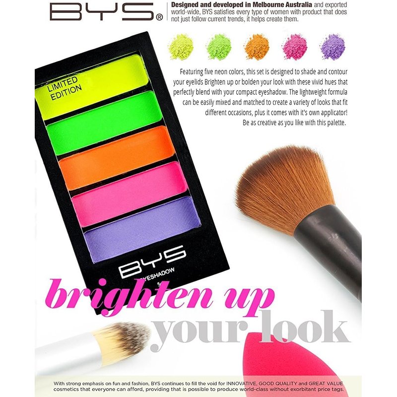 BYS Women's 5-Piece Eye Shadow Palette, Neons Eye Pigments, 0.17 Ounce (Pack of 1)