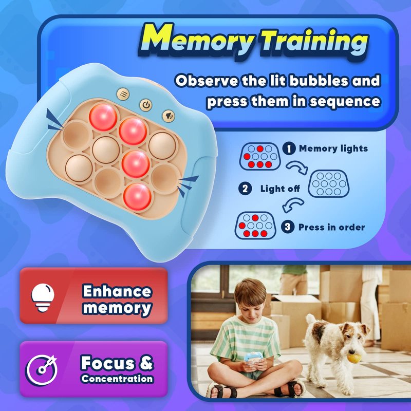 - 【Upgraded Educational Toy】Addictive classic press bubble game meets fast electronic game! Our newly released handheld toys, which is more simple and more fun than most simon game toys. Kids will engage in positive thinking, hand-eye coordination, and brain training during play challenges filled with lights and sounds, promoting your child's sensory development.
