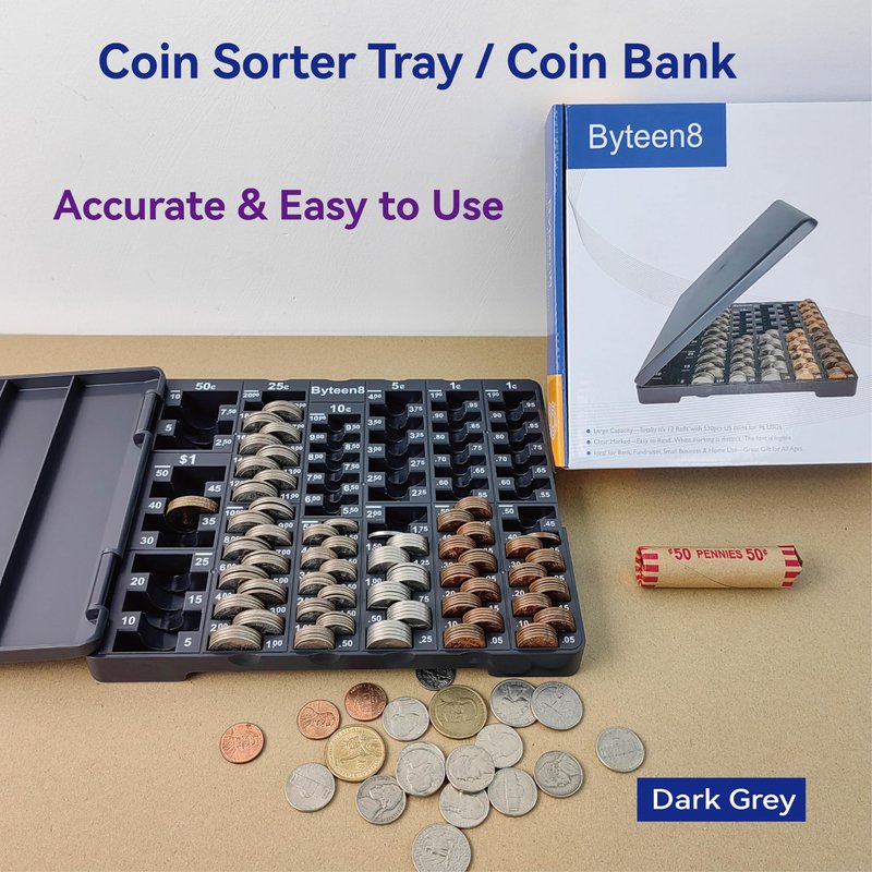 - for All 6 U.S Coins: Byteen8 Coin Counter Tray with Cover is designed for all 6 U.S Coins: Pennies, Nickels, Dimes, Quarters, Half Dollars and Dollar. The easy way to keep track of your loose change
