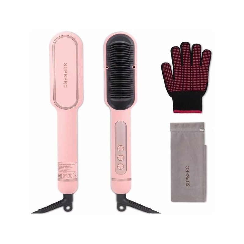 c, 30s Fast Heating, Hair Straightening Comb with LED Display, Anti-Scald & Auto-Shut Off Hair Straightening Iron (Pink)