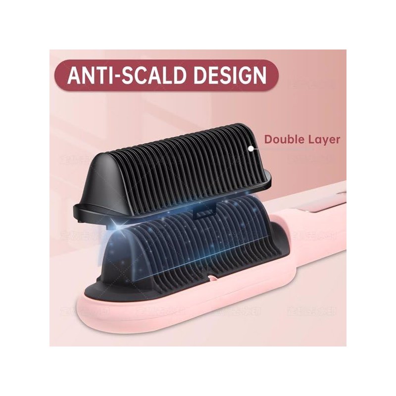 - Safe&Flexible: Hair Straightening brush with dual comb design avoids high temperature to burn our hair and skin. In addition, after 30 minutes, it will automatically shut off, keep you from fire risk. Hair straightener is only 0.88lb, lightweight and portable. The 360° rotating wire allows you flexibly brush hair without worrying about entanglement.