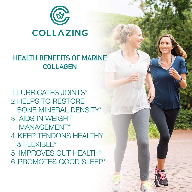 C COLLAZING Collagen is a premium blend of Wild-Caught Marine Collagen Peptides and Hyaluronic Acid and Vitamin C that work in synergy to support Youthful Radiant Skin, Shiny Hair and Stronger Nails. Developed to exceptionally high-quality standards – this formula is formulated to be better absorbed, and more easily to digestible than other common collagen.
