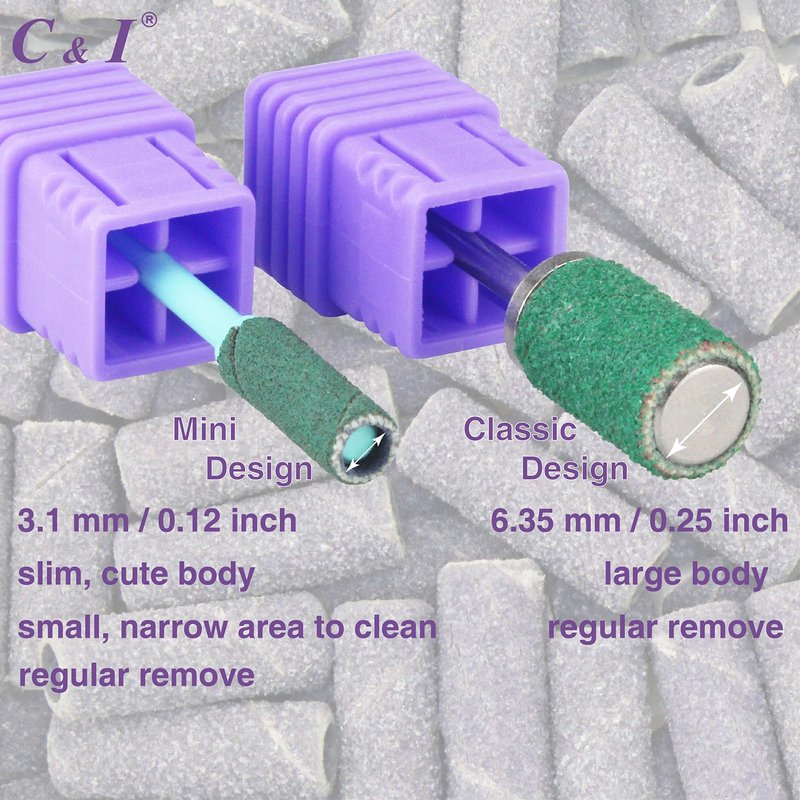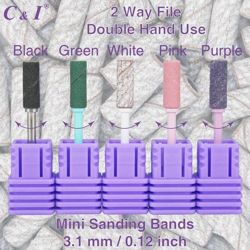 C & I Mini Sanding Bands Set<br>50pcs mini sanding bands and 1pc mini mandrel.<br>Sanding bands substitute for nail drill bits. Professional nail supplies for nail techs. Must have in nail salon, nail studio, or at home use.<br>