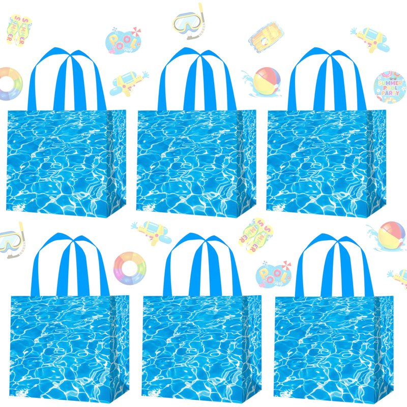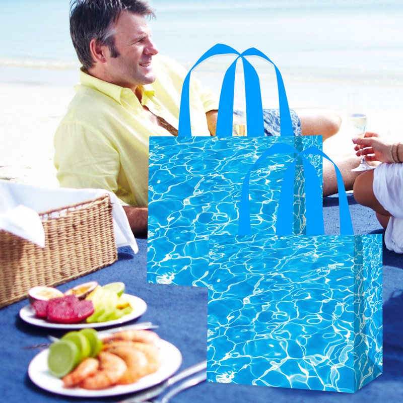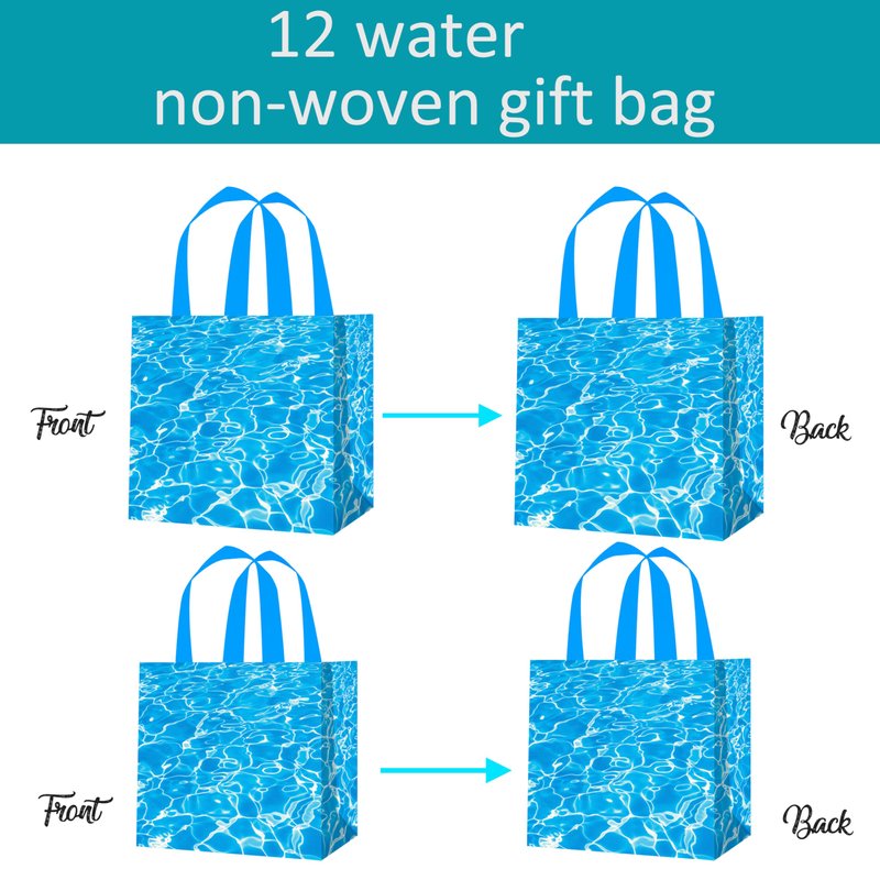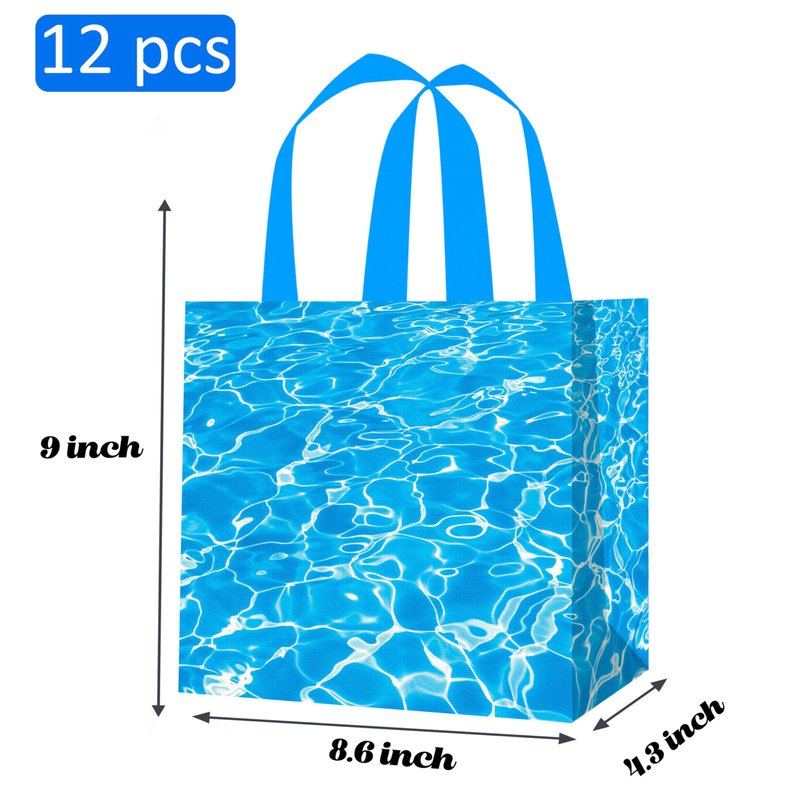 C L cooper life 12pcs Ocean Wave Gift Treat Bags with Handles Summer Beach Pool Party Grocery Shopping Bags Under The Sea Theme Non-Woven Bag for Ocean Birthday Party Baby Shower Supplies