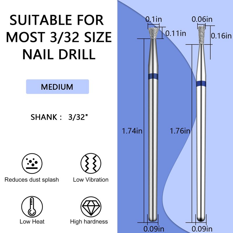- High Quality Material:This flat nail drill bit is made of Diamond Carbide, which is abrasion resistant and durable. Suitable for personal nail art or nail technician.