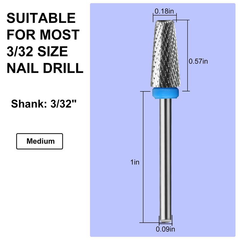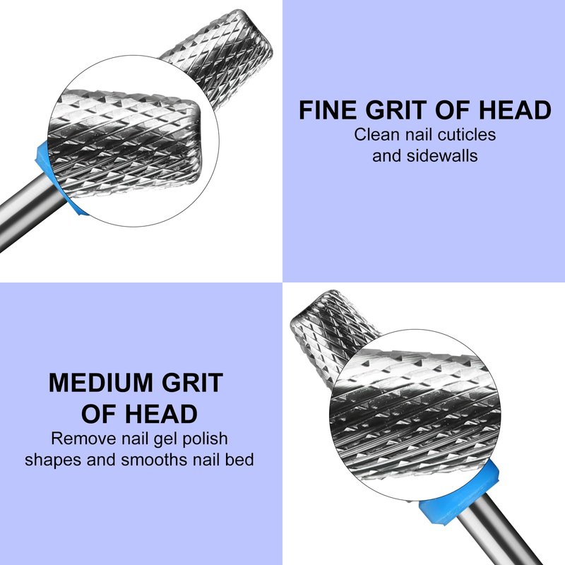 - Multi-functional Drill Bit:5-in-1 drill bit with sanding,cleaning and prepping,shaping and shortening,cuticle work,under the nail and backfills.Allows you to reduce the time spent on changing drills.The Coarseness on the drill surface changes from top to bottom: Top is for cutting dead skin,2nd part is Extra Fine,3rd part is Fine,and the bottom base is Medium grit.