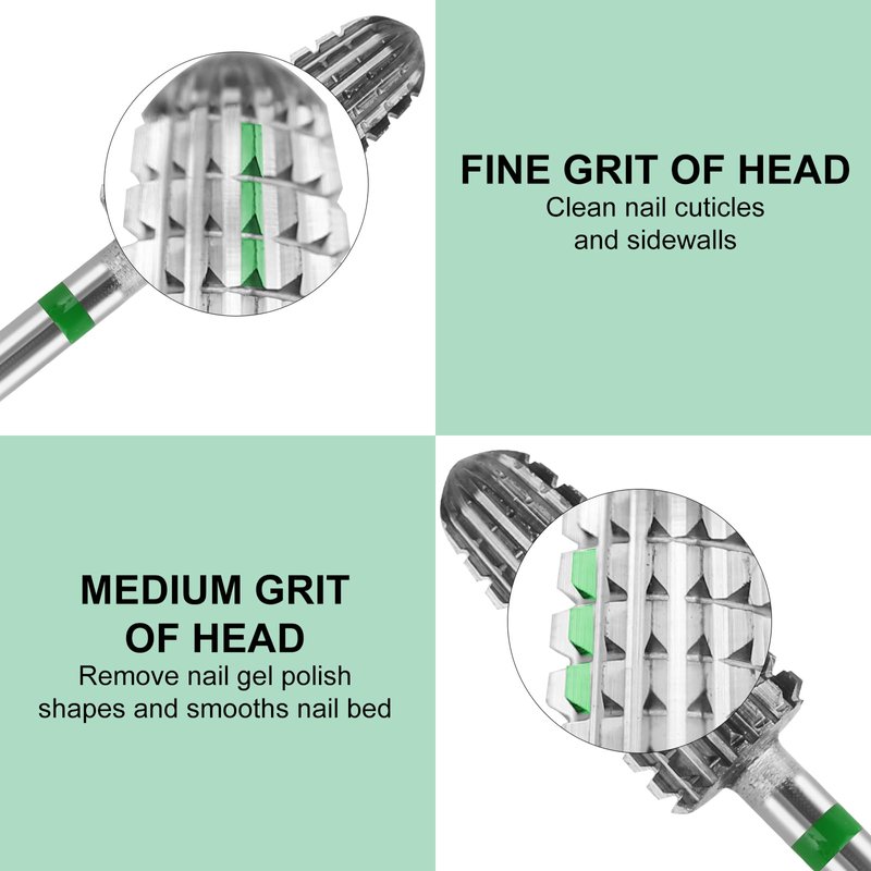 - Multi-functional Drill Bit:5-in-1 nail drill bit with sanding,cleaning and prepping,shaping and shortening,cuticle work,under the nail and backfills.Allows you to reduce the time spent on changing drills.The Coarseness on the drill surface changes from top to bottom: Top is for cutting dead skin,2nd part is Fine,3rd part is Medium,and the bottom base is Coarse.