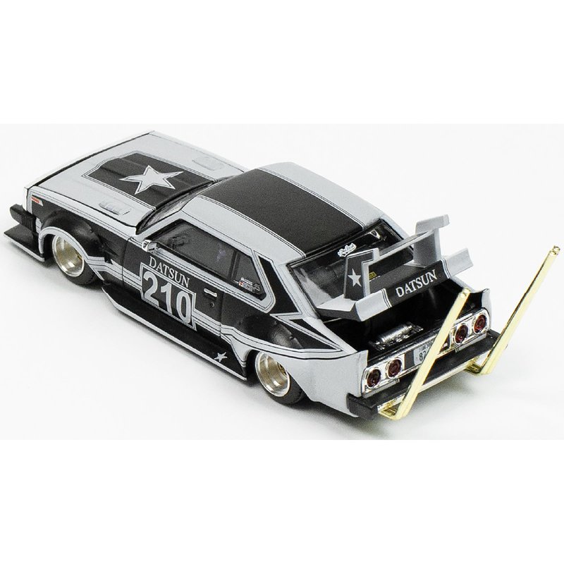 C210 Bosozoku Style RHD (Right Hand Drive) #210 Matt Black and Silver 1/64 Diecast Model Car by Pop Race PR640073
