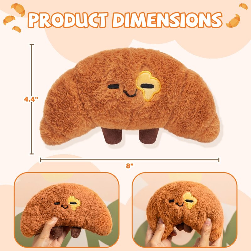 - CUTE & FUNNY: This 8" croissant plush toy is specifically designs for kids. For children, their little hands can hold the toy firmly. And the suitable size plush toy can help our baby to develop their finger grip.