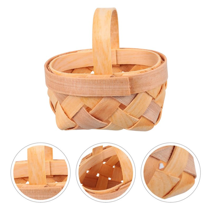 - 🌸【Mini Picnic Basket】----Mini woven basket wood chip basket with handle, miniature basket, dollhouse miniature candy basket, suitable for farmhouse wedding party , fine workmanship, durable and sturdy.
