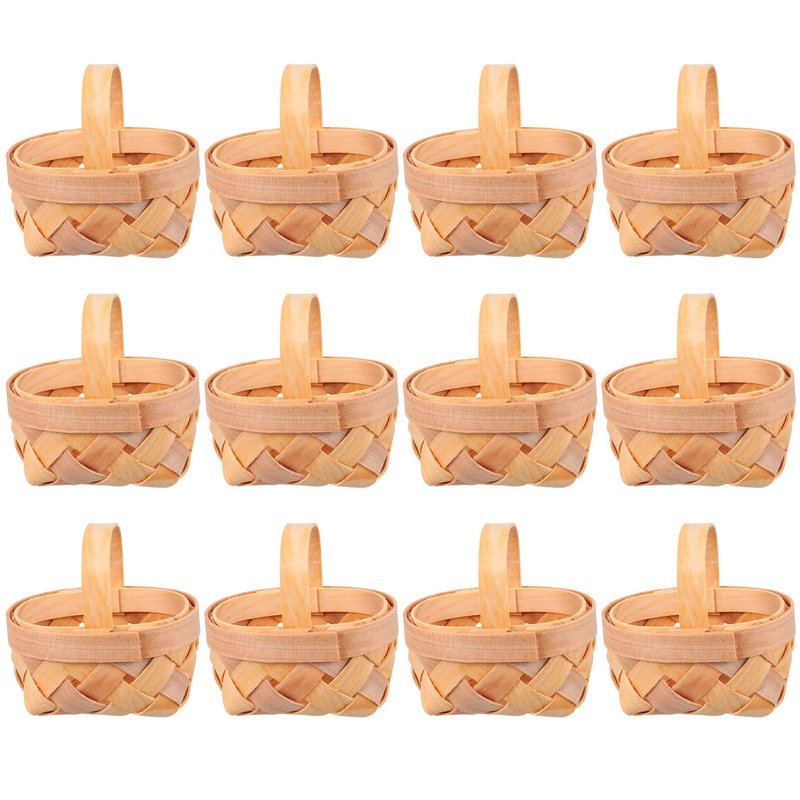 12pcs Mini Woven Baskets with Handle Wood Chip Baskets Miniature Baskets Dollhouse Tiny Candy Basket for Farmhouse Wedding Party Favors