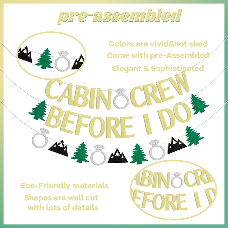 Cabin Crew Before I Do Banner, Mountain Bachelorette Party Decorations, Last Trail Before the Veil, Camp Bach Decor Gold Glitter