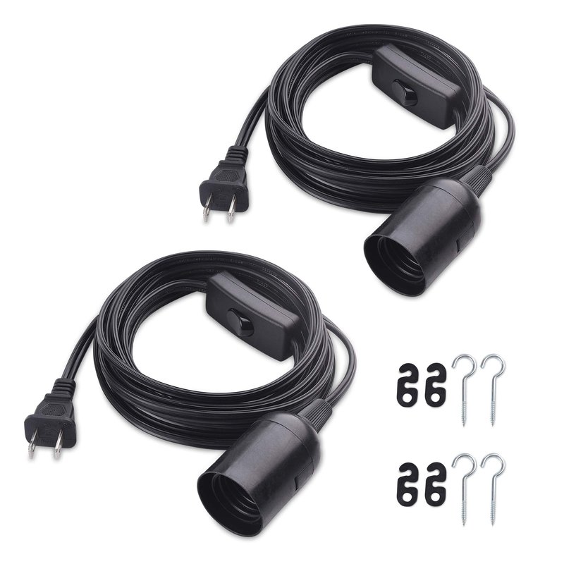 - Hanging lamp cord with switch provides unlimited options for lighting in the living room, bedroom, dining room, home office, closet space or garage; Hang a light near an electrical outlet with the included hooks and cord wrappers