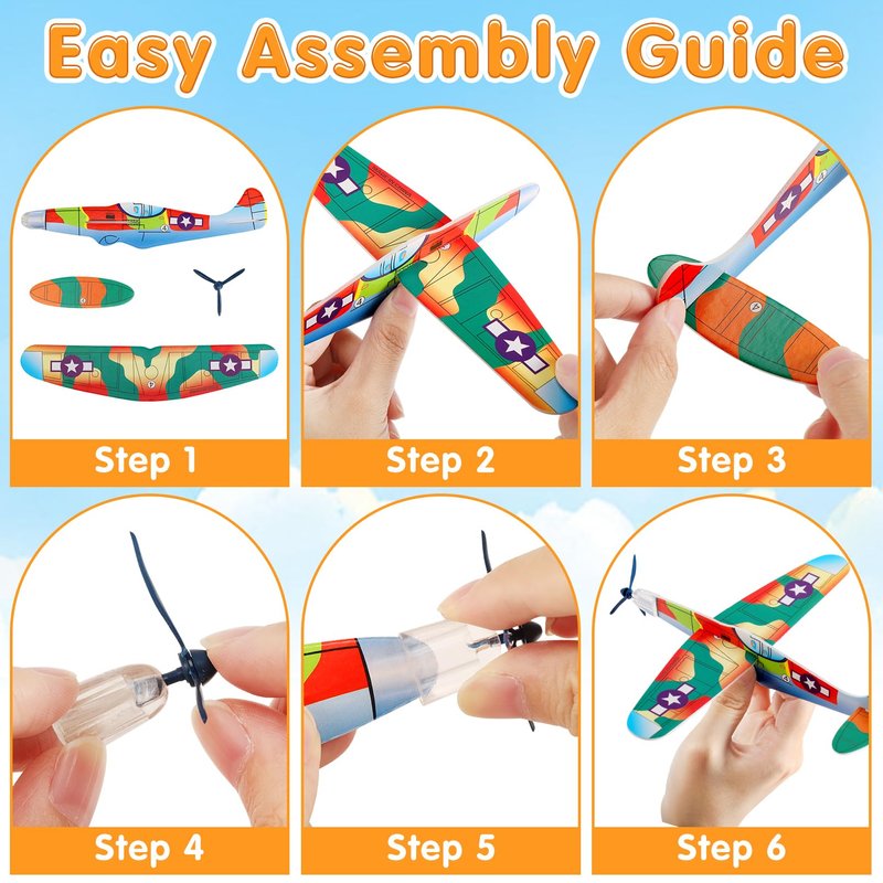 - EASY TO ASSEMBLE: These lightweight, soft gliders are easy to assemble, simply attach the main wing and and the tail wing to the fuselage. Your kids can build their own planes in minutes.
