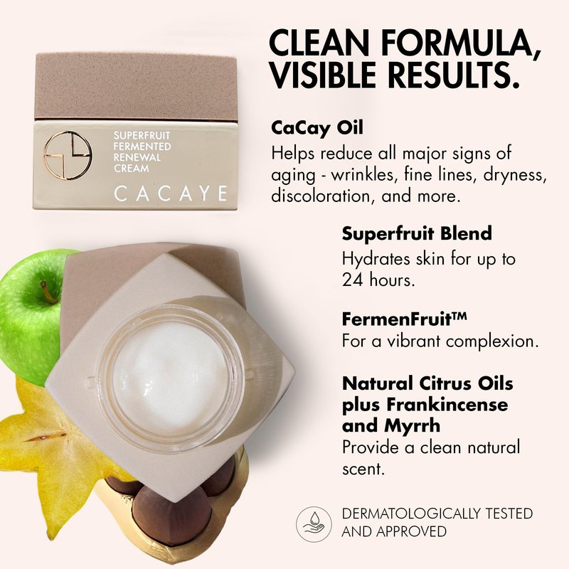 - Renew Your Skin: Nourish your skin with the CACAYE Superfruit Fermented Renewal Cream Face Moisturizer! Dermatologically tested and consumer proven, this lightweight moisturizer for the face is gentle enough to be used morning and night.