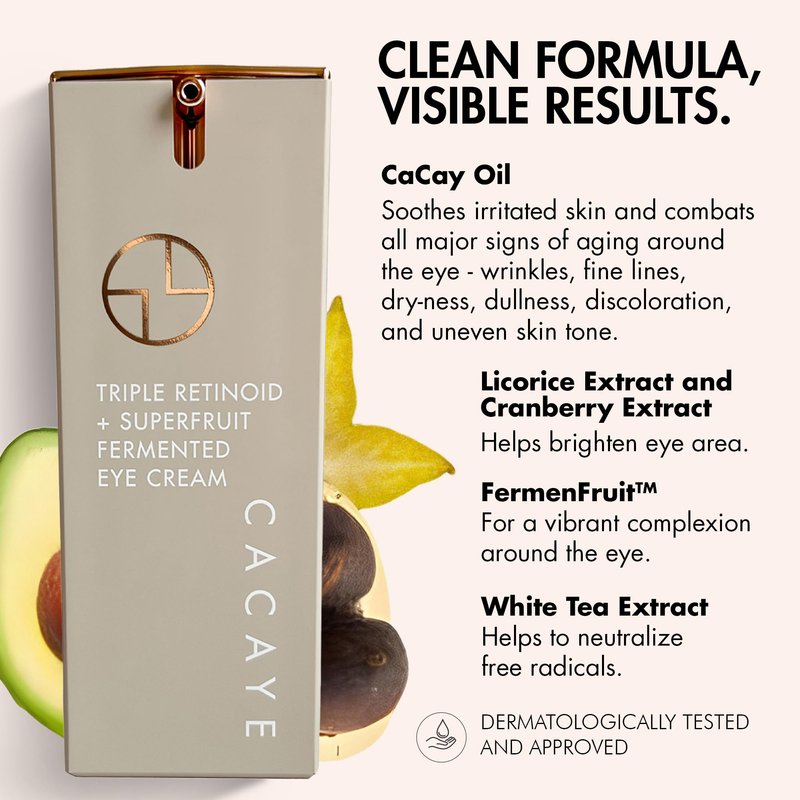 - Slow Down The Signs of Aging: Help improve the appearance of the eye area with the CACAYE Triple Retinoid + Superfruit Fermented Eye Cream! Gentle for all skin types, this is a natural retinol alternative eye anti aging cream that can be used morning and night.