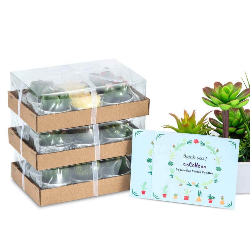 Cactus Tealight Candles(18 Pcs Gift Boxed), Artificial Succulents Decorative Tea Light Candles,Perfect for Birthday Wedding Party Home Decor