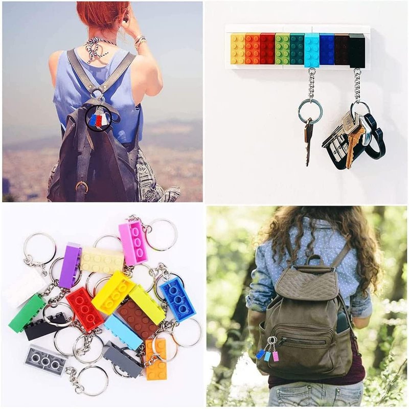 - 【Colorful Keychains】 The package contains 10 key rings in different colors and two base plates . Size: 3.2 * 1.6 * 1.1 cm, which is compatible with most building blocks.