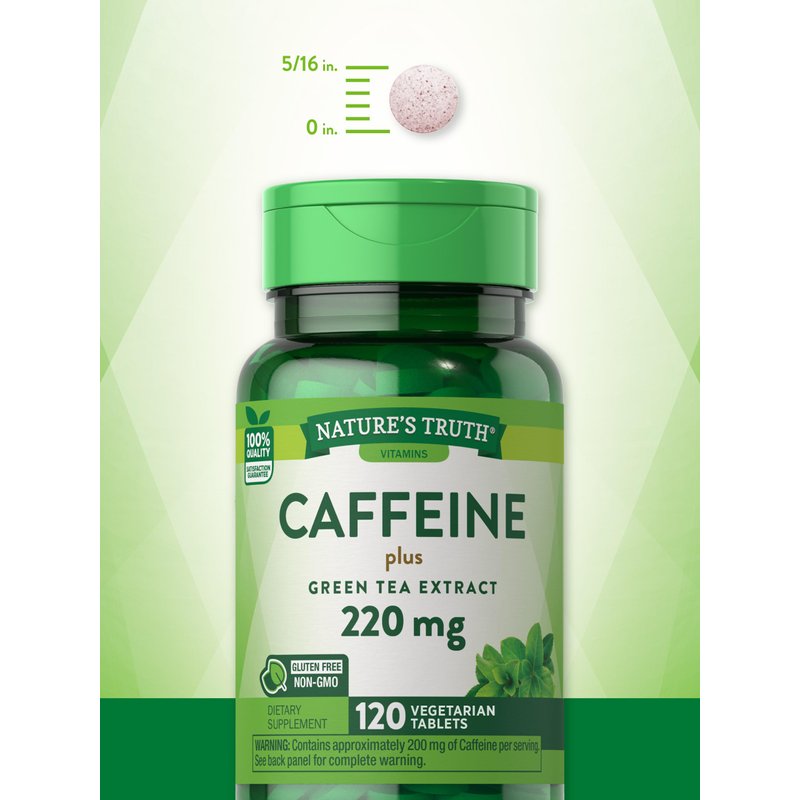 Caffeine Pills | 220mg | 120 Count | with Green Tea Extract | Vegetarian, Non-GMO & Gluten Free Supplement | by Nature's Truth