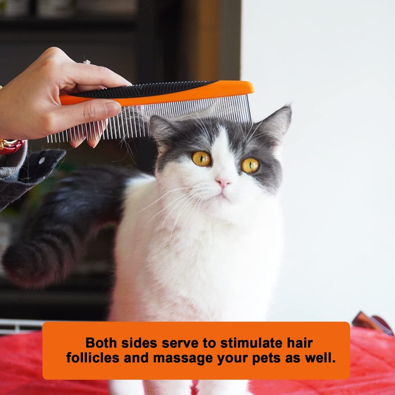 - ✅ 【STURDY AND DURABLE】The teeth is made of high quality stainless steel, and the grip is made by advanced coating process, so that this cat comb is durable, corrosion resistant and will not fade, good for avoiding static electricity.