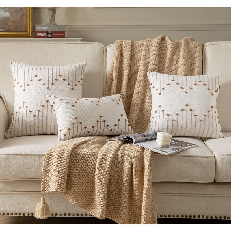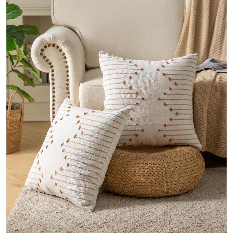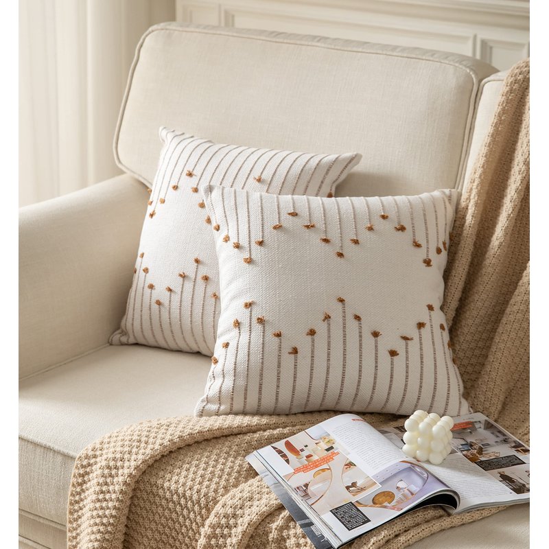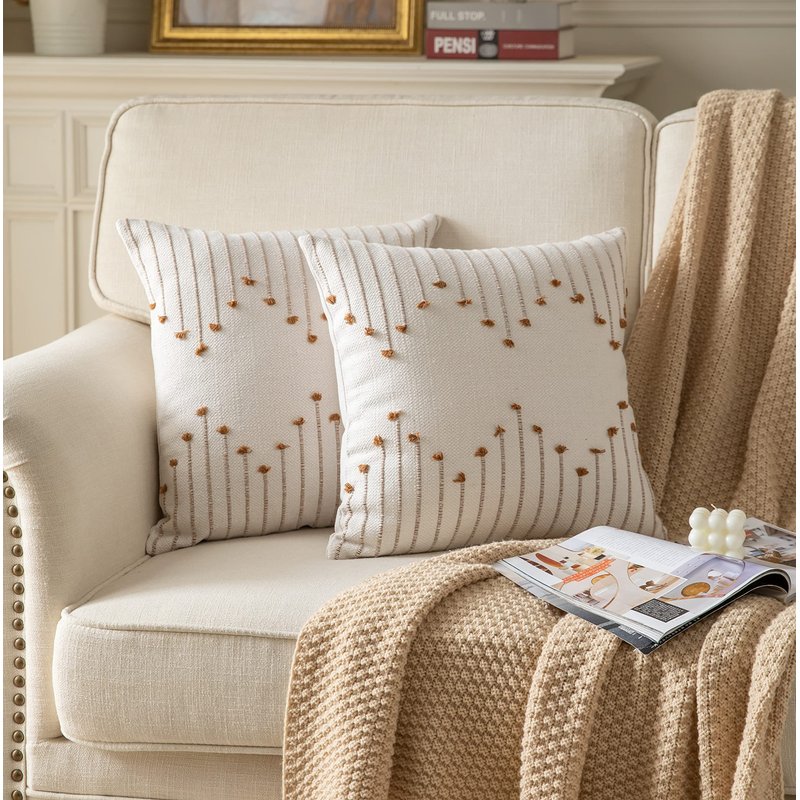 - 【Exquisite Chic Design】:The simple and neutral designs of these pillow covers will complement any decor style, from modern to boho. The color is natural and comfortable, Lingering lines and mini tassels that will give any dull space an instant facelift