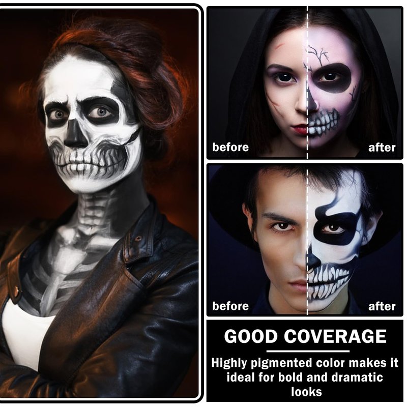 - Black and white paint palette allows you to be creative freely on the skin, can be used as daily use or Halloween makeup, clown makeup, zombie makeup, vampire makeup.