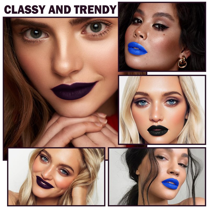 CAHIUYOA 3Pcs Dark Black Blue Purple Matte Liquid Lipstick Lip Stain Lip Gloss Makeup Set,DNM Non Stick Cup Long Lasting Smudge Proof Waterproof Lipstick labial mate larga duracion 24 (Set07)