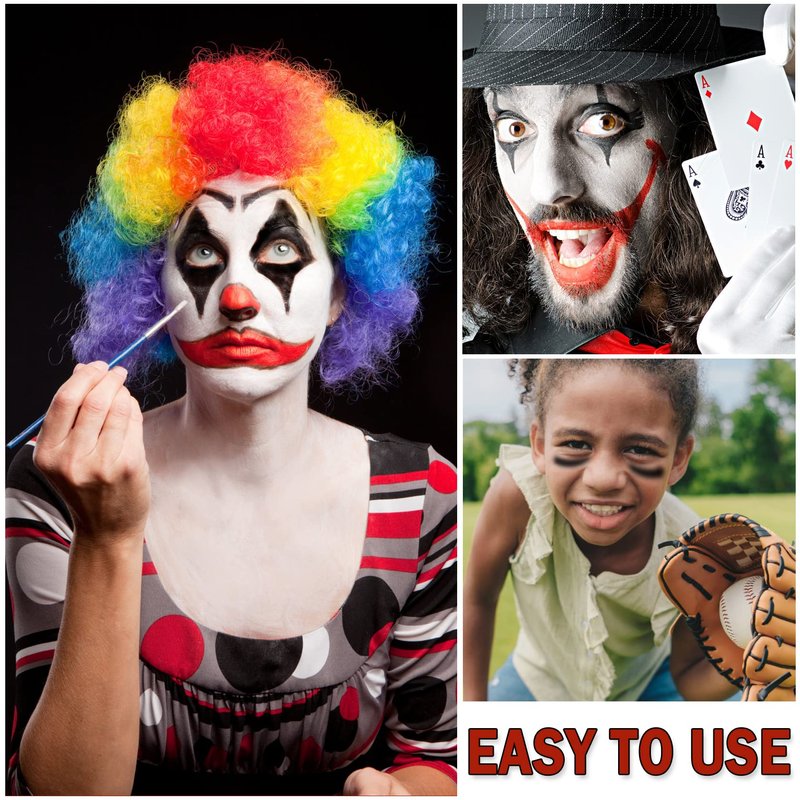 - 【Applicable Occasion】Halloween face paint is perfect for Halloween SFX makeup for goth, vampire, clown, pantomime, zombie, cosplay, drama, stage, performance, also for professional baseball football softball sports eye black makeup.