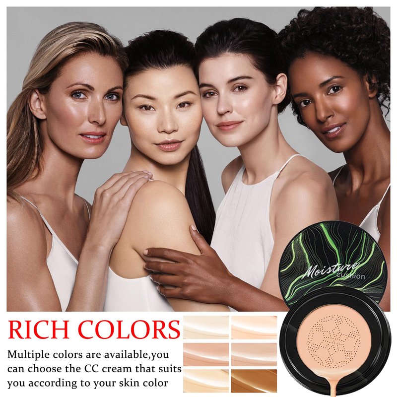 - 【PRODUCT EFFICACY】Mushroom head air cushion CC cream can moisturize, control oil, waterproof and sweat, natural concealer, hide pores, even skin tone, create a temperament makeup, and show a more perfect skin tone.