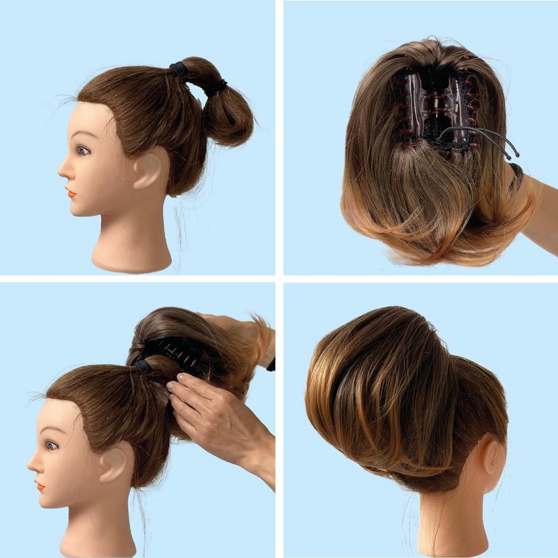 CAISHA Bun Hairpiece Ponytail With Butterfly Clip Hair Bun Bridal Hairstyle Hepburn Bun Scrunchie Straight Red H415