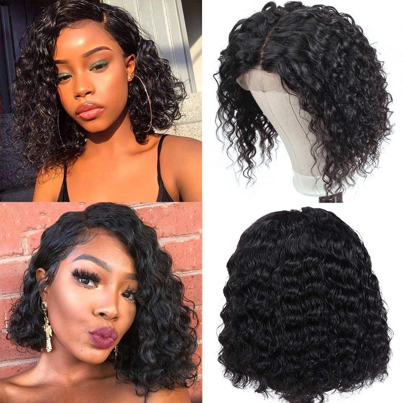 Hair Material:100% unprocessed virgin Brazilian human hair deep wave bob wigs.
