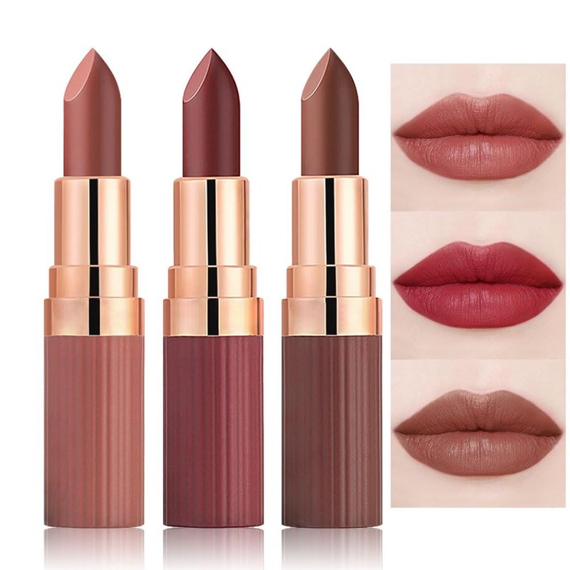 3 Pcs Nude Lipstick Matte Sets,Light to Dark Velvet Lipstick for Women Long Lasting Waterproof 24 Hours Lip Stick Lip Stain Makeup Gift Sets,labiales mate 24 horas originales