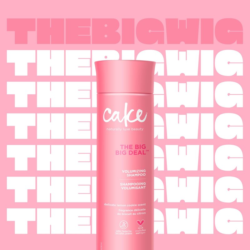- CLEANSES AND VOLUMIZES: In the shower, pair this Cake ‘Big Big Deal’ Volumizing Shampoo with ‘Big Wig’ Volumizing Conditioner to refresh and take your hair to higher heights. For stylers that give you big bombshell volume, try Cake ‘The Big Wig’ Volumizing Mousse and Dry Texture Spray.