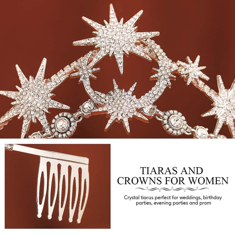 CAKURE Star Moon Tiaras and Crown Silver Wedding Rhinestone Crowns Headband Bridal Crystal Tiara Headpiece Wedding Hair Accessories for Women