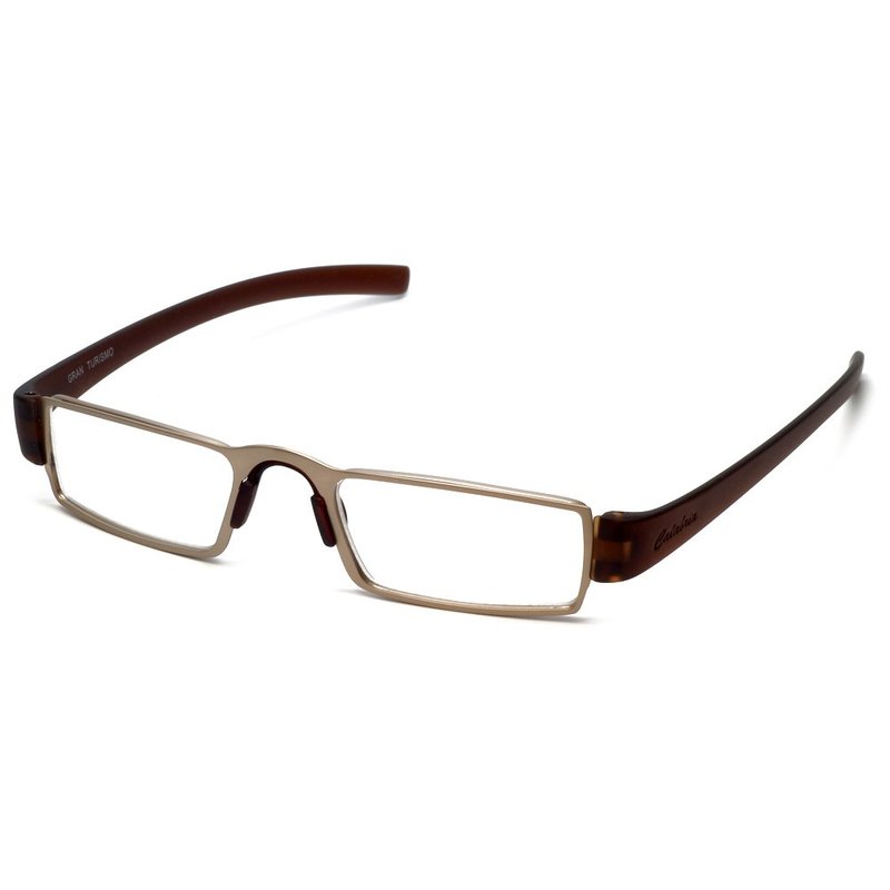 Calabria Coupe Anti Reflective Reading Glasses +1.00 Gold Mens Gran Turismo Stainless Steel Trendy Readers Designer Eyeglass