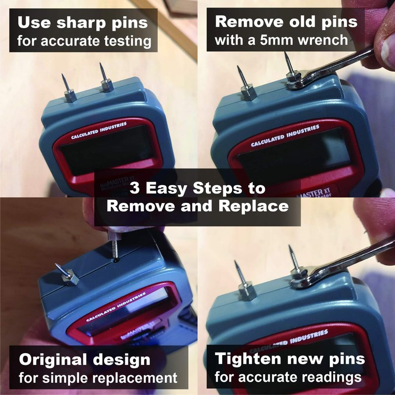 - PACK INCLUDES – (2) 3/8” (10mm) pins and (2) 3/16” (5mm) pins, stainless steel AccuMASTER replacements. These pins work with the AccuMASTER model 7440 and 7445 moisture meters