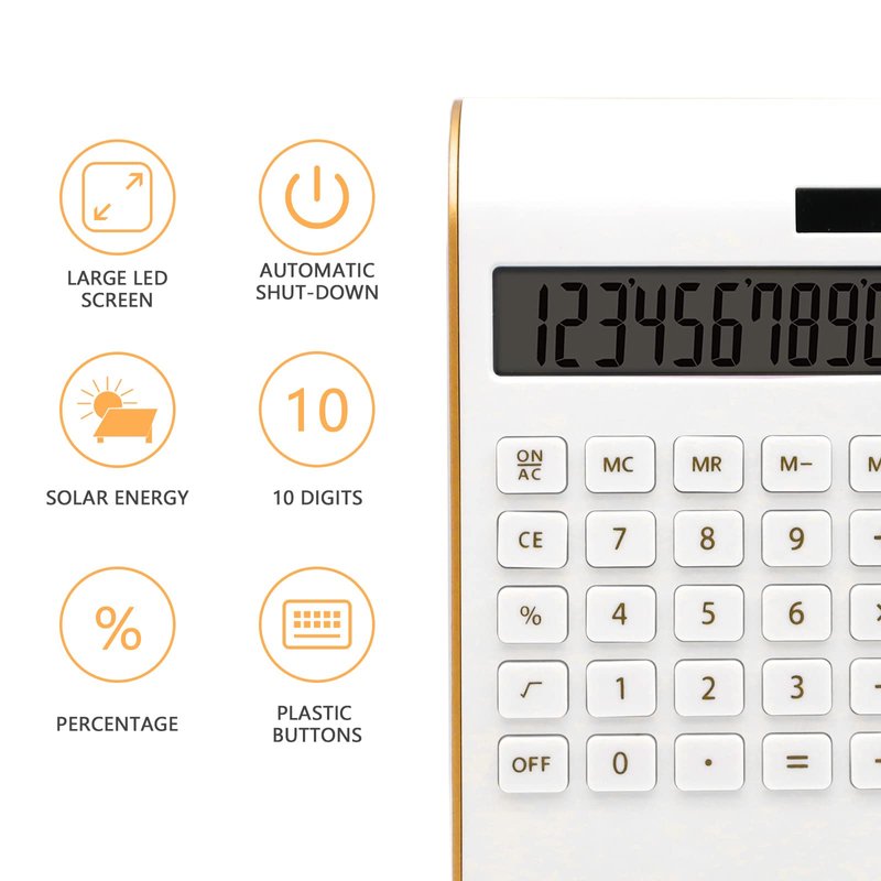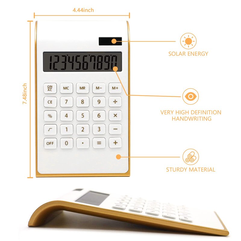 Calculator, 10 Digits Solar Battery Basic, Dual Powered Desktop Calculator, Tilted LCD Display, Inclined Design Slim Desk Calculator by Sportsvoutdoors (White)