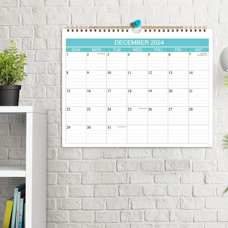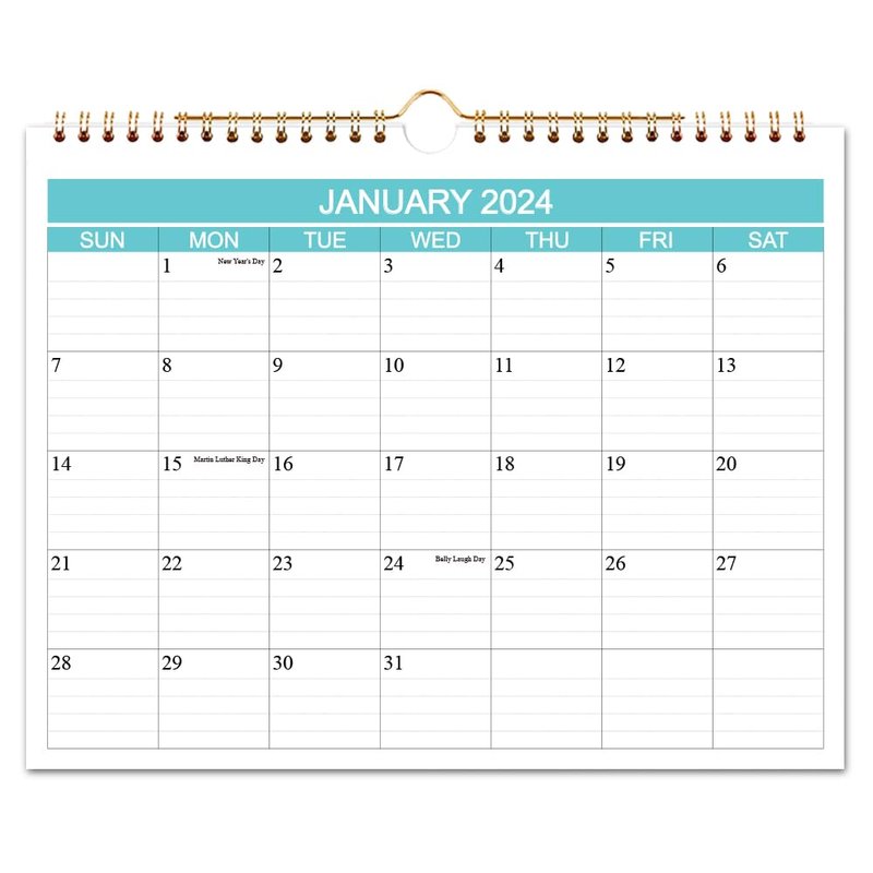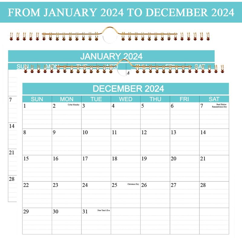 - EYE-CATCHING DESIGN - This 2024 wall calendar uses classical teal color, planning your everyday in a fresh way. Federal holidays highlighted in different color to help remind you of every important holiday and manage your life efficiently