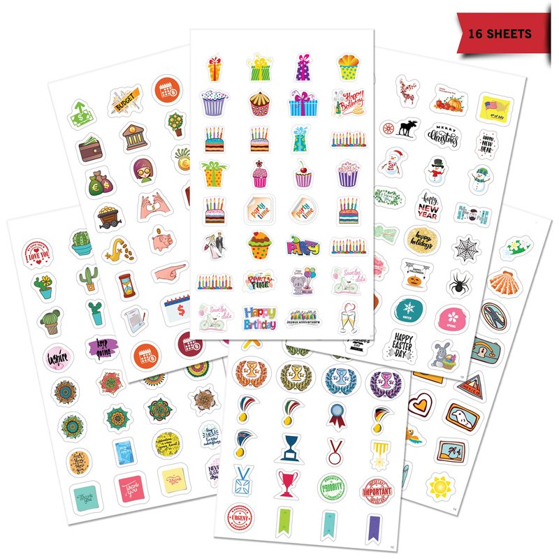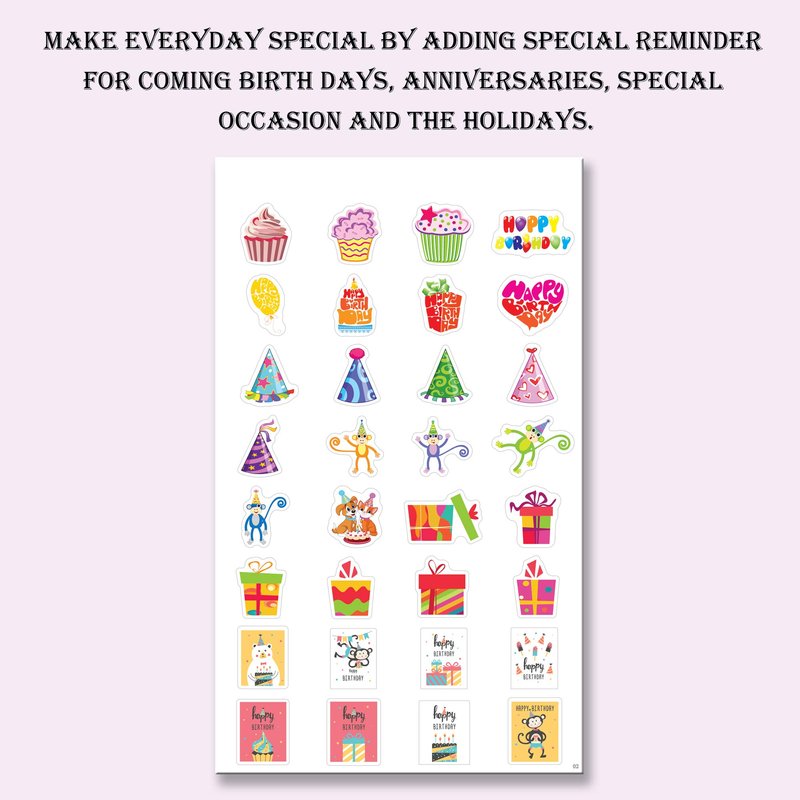 - ✔ ORGANIZE WHILE HAVING FUN: The colorful beautiful artwork makes even the boring activities fun; Don't forget an important doctor's appointment, family get together, birthday, anniversary, bill payment; There are stickers to remind you to relax and take some required me-time, reminder for daily exercise, yoga and fitness schedules; There are stickers to remind you of important project schedules, goals; There are stickers to mark things urgent, important and to-do