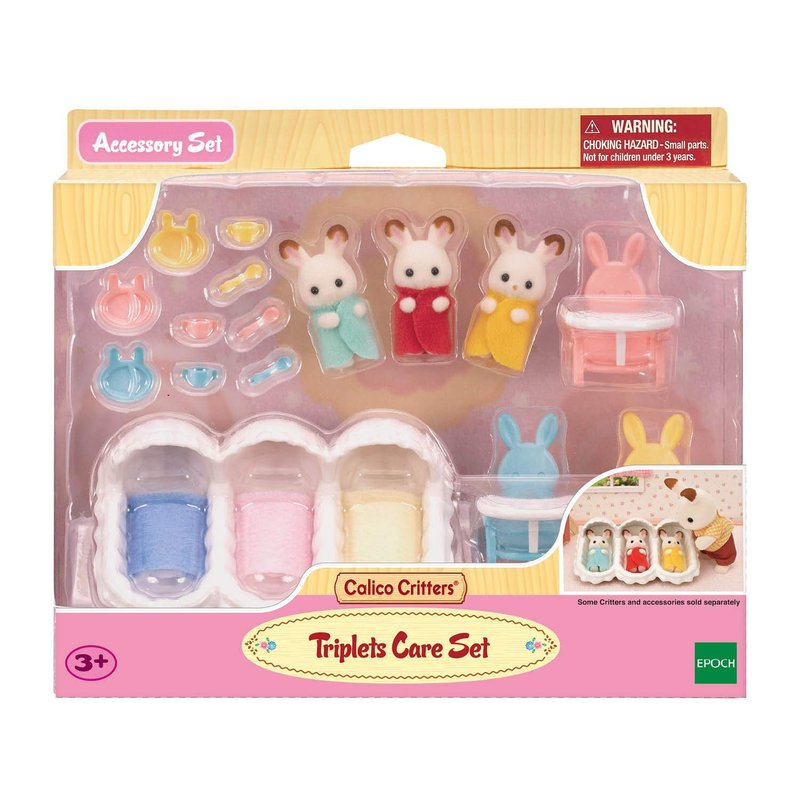 Calico Critters Triplets Care Set - Dollhouse Playset with 3 Hopscotch Rabbit Figures & Accessories Included