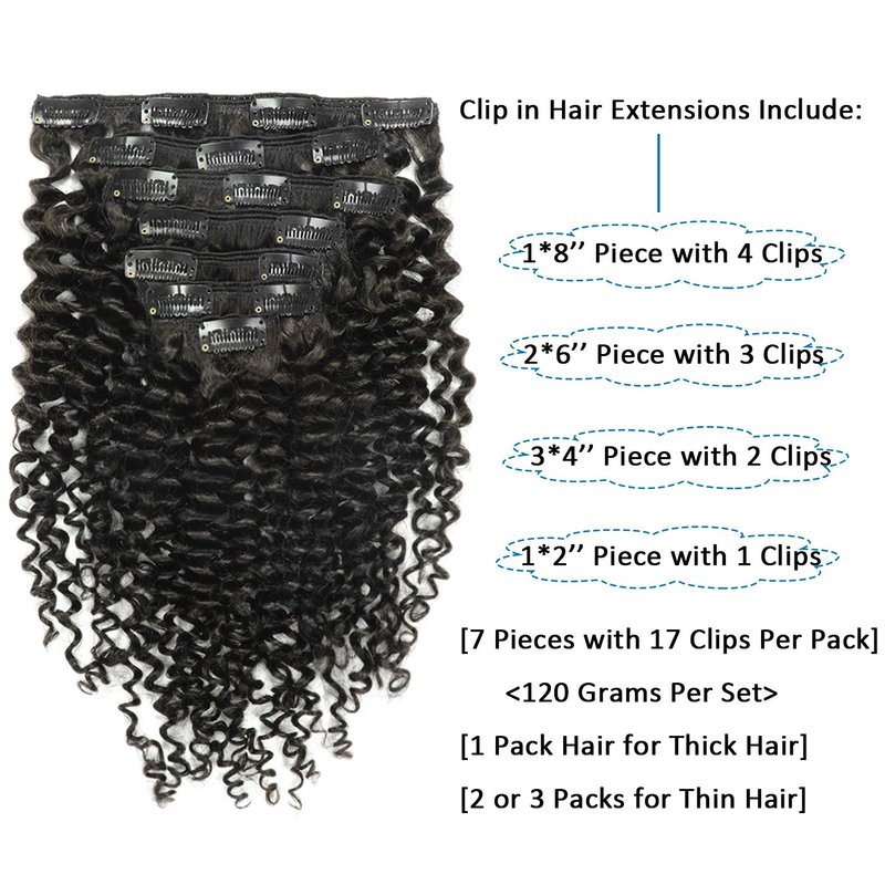 - 3.【3B 3C Curly Clip in Hair Specifications】The Hair is 120gram with 7pcs, 17pcs per pack. 1 Pack can be enough for adding volume. 2 packs or more hair can do a full hairstyle.