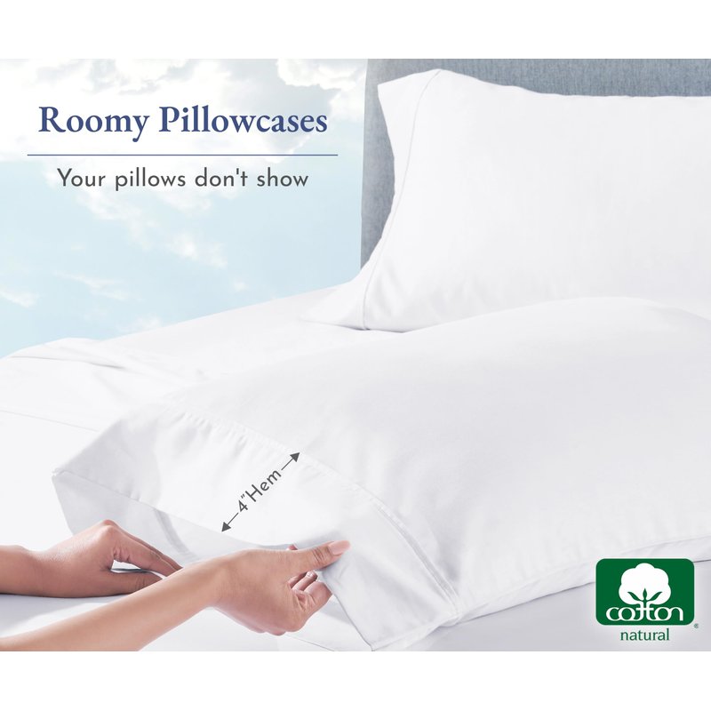 - King Size Fit - Our cotton pillowcase set of 2 (21" W x 40" L) are designed for king size pillows. Featuring a 4-inch hem to prevent pillows from slipping out and providing a perfect fit for a quality night's sleep.