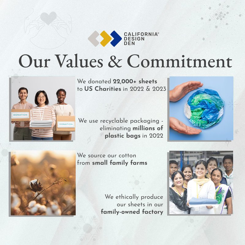 - Our Commitment - In 2022 & 2023, we donated over 22,000 pieces of bedding to local charities in the USA. We do not use plastic in our packaging, and our pillowcases are produced in our family-owned and operated factory in India. Each piece is inspected for quality, and we promise to replace any defective products at no cost to you. Buy with confidence with our 30-day return policy, even if you've washed or used our product.