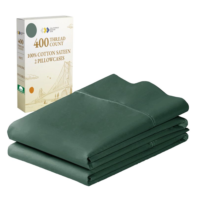 California Design Den Standard Queen Size Pillowcase Set - 400 Thread Count, 100% Cotton Sateen, Set of 2 Pillow Covers, Breathable, Cooling, Soft for Quality Sleep - Hunter Green