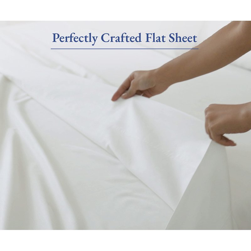 Sleep calmly with our 400 thread count flat sheets that provide incredible softness, comfort, and durability. Luxury hotels choose 100% cotton sheets for their natural comfort and ability to regulate body temperature. We prefer pure cotton because it is naturally gentle on your skin and promotes a restful sleep. Cotton is plant-based, safe, pure, and natural. Our flat sheets are crafted with 400 threads per inch and a lustrous sateen weave for durability and breathability. Made with pure cotton yarns, they offer the most comfortable sleeping experience. The 400 thread count top sheet is sold separately and offers the quality and luxury of Supima cotton sheets. Our flat sheets are made using premium-quality dyes that are colorfast, machine washable, and get softer with every wash. The fabric is tested for no pilling, shrinkage, tear strength, and thread count authenticity, ensuring durability and easy care. Expertly and ethically made, our flat sheets are stitched to perfection to provide the look and feel of luxury, style, and comfort.